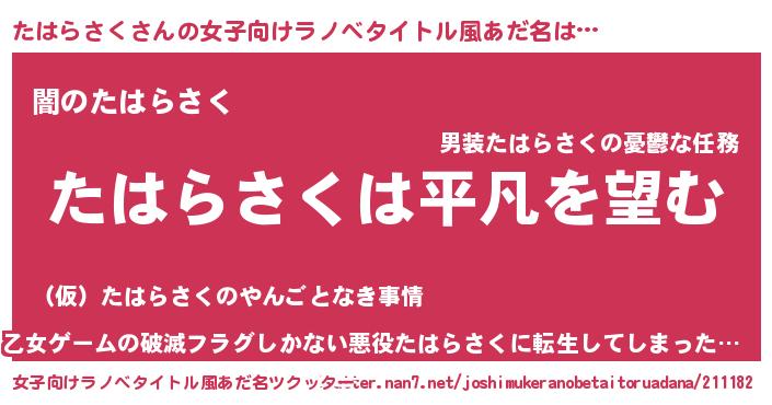 | 胡散臭い通販商品みたいなあだ名 | 『信頼と実績のネックレス…その名も「たはらさく」』 |