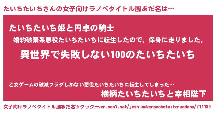 | 胡散臭い通販商品みたいなあだ名 | 『絶対に幸福をもたらす健康食品…その名も「たいちたいち」』 |