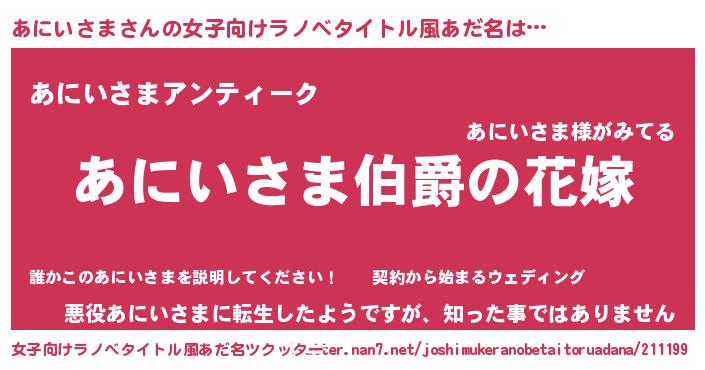 | 意味不明あだ名 | 『あにいさまフォーエバー』 |