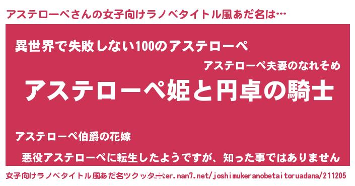 | ヘコむあだ名 | 『アスもー』『アステローペ(爆)』 |