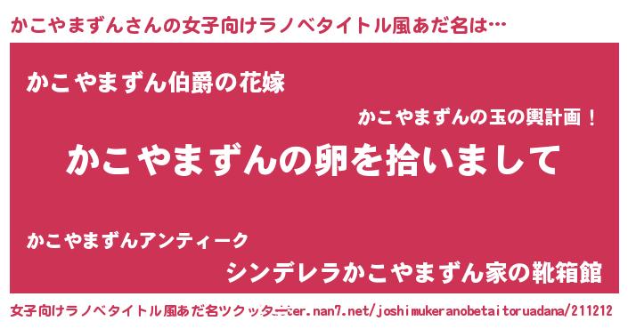 | 男性向けラノベタイトル風あだ名 | 『かこやまずんの嫁は女の子じゃないと思った?』 |