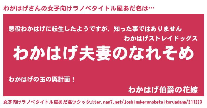 | 胡散臭い通販商品みたいなあだ名 | 『100人中100人が認めたマグネット磁石…その名も「わかはげ」』 |