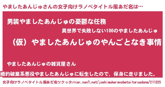 | 男性向けラノベタイトル風あだ名 | 『やましたあんじゅの憂鬱』 |