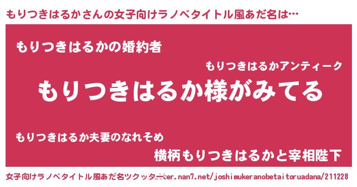 | 男性向けラノベタイトル風あだ名 | 『もりつきはるかの嫁は女の子じゃないと思った?』 |
