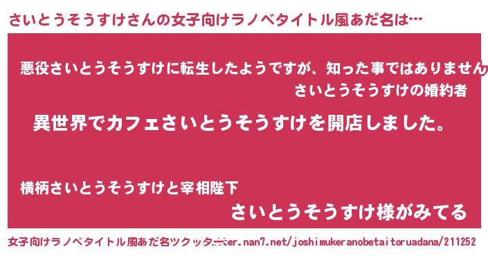 | 男性向けラノベタイトル風あだ名 | 『誰もが恐れるあのさいとうそうすけが、ぼくの専属メイドになるようです。』 |