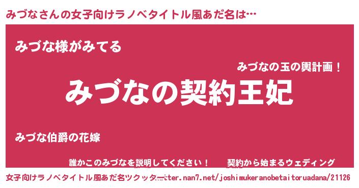 | 男性向けラノベタイトル風あだ名 | 『誰もが恐れるあのみづなが、ぼくの専属メイドになるようです。』 |