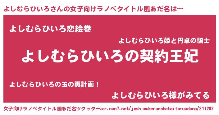 | ヘコむあだ名 | 『よしむらひいろ(笑)』『よしぷりん』 |