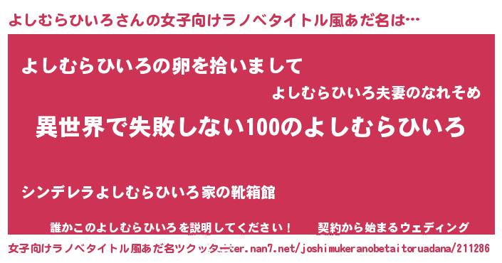 | 男性向けラノベタイトル風あだ名 | 『よしむらひいろという概念が存在しない退屈な世界 』 |