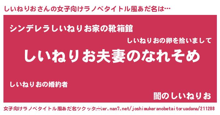 | 男性向けラノベタイトル風あだ名 | 『おまえをオタクにしてやるから、俺をしいねりおにしてくれ! 』 |