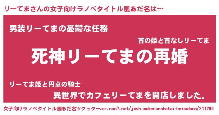 | 男性向けラノベタイトル風あだ名 | 『ノーゲーム・ノーリーテマ』 |