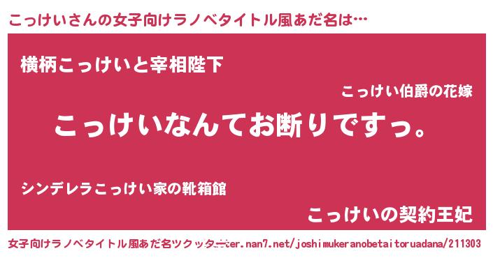 | 意味不明あだ名 | 『自称こっけい』『永久保存こっけい』 |
