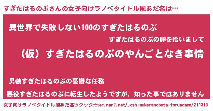 | 胡散臭い通販商品みたいなあだ名 | 『必ず成功するブレスレット…その名も「すぎたはるのぶ」』 |