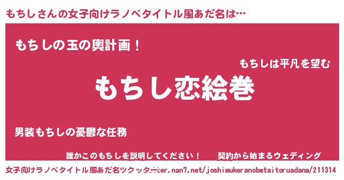 | 男性向けラノベタイトル風あだ名 | 『ノーゲーム・ノーモチシ』 |