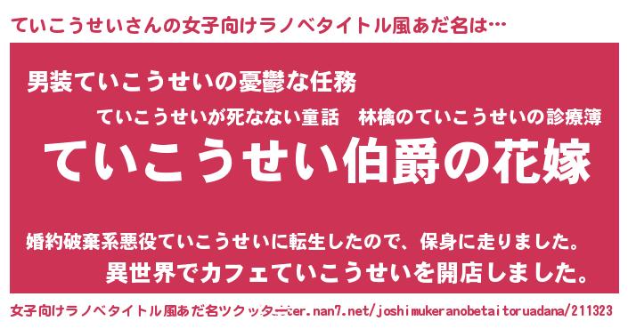 | 男性向けラノベタイトル風あだ名 | 『やはりていこうせいの青春ラブコメはまちがっている 』 |