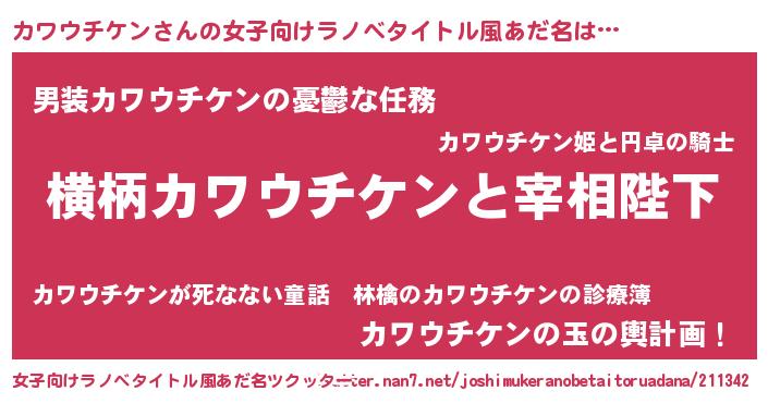 | 男性向けラノベタイトル風あだ名 | 『カワウチケンに滅ぼされるだけの簡単なお仕事です』 |