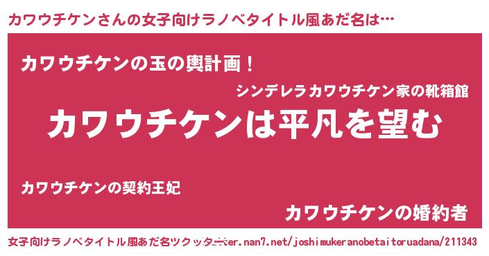 | 男性向けラノベタイトル風あだ名 | 『ダンジョンにカワウチケンを求めるのは間違っているだろうか』 |
