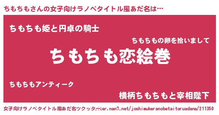 | ヒーロー風カッコイイあだ名 | 『愛の使者ちもちも』『スーパーチモチモ』 |