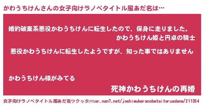 | 胡散臭い通販商品みたいなあだ名 | 『あなたにだけ特別に提供する世界で10本だけ現存している希少なブランデー…その名も「かわうちけん」』 |