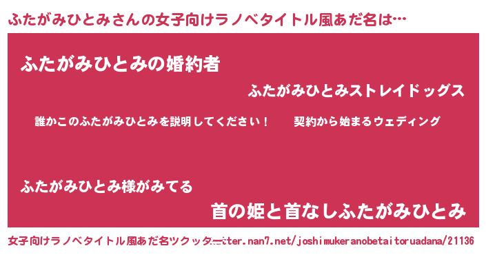 | 胡散臭い通販商品みたいなあだ名 | 『億万長者になれるブレスレット…その名も「ふたがみひとみ」』 |