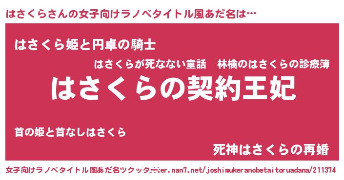 | 男性向けラノベタイトル風あだ名 | 『誰もが恐れるあのはさくらが、ぼくの専属メイドになるようです。』 |