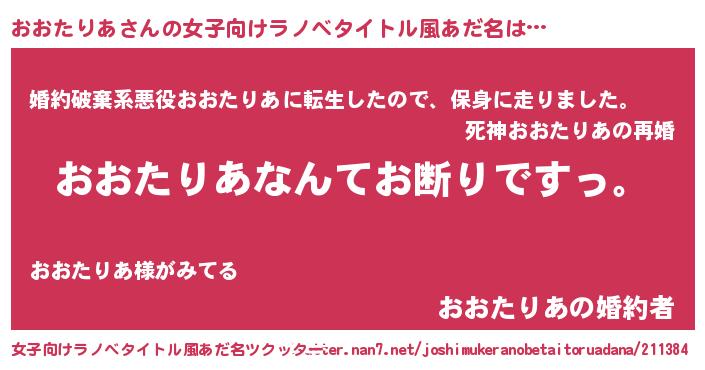 | 意味不明あだ名 | 『自称おおたりあ』 |
