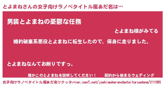 | 男性向けラノベタイトル風あだ名 | 『トヨマネスレイヤー』 |