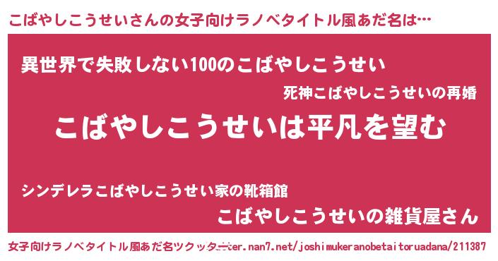 | 男性向けラノベタイトル風あだ名 | 『ダンジョンにこばやしこうせいを求めるのは間違っているだろうか』 |