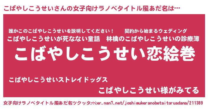| 男性向けラノベタイトル風あだ名 | 『ノーゲーム・ノーコバヤシコウセイ』 |