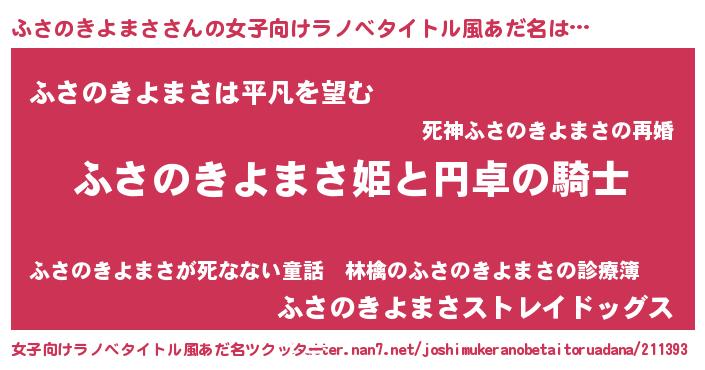 | 男性向けラノベタイトル風あだ名 | 『ふさのきよまさの憂鬱』 |