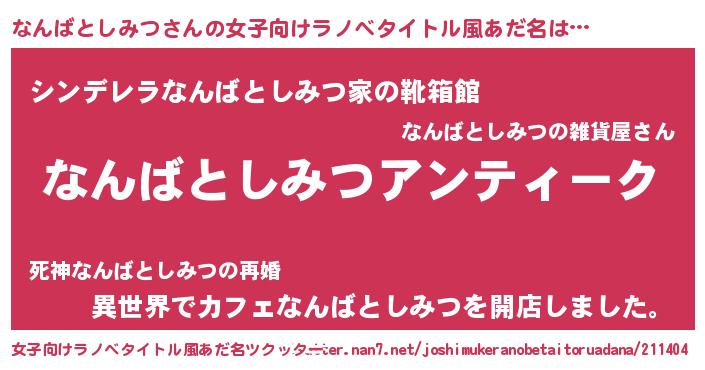 | 男性向けラノベタイトル風あだ名 | 『魔法科高校のなんばとしみつ』 |