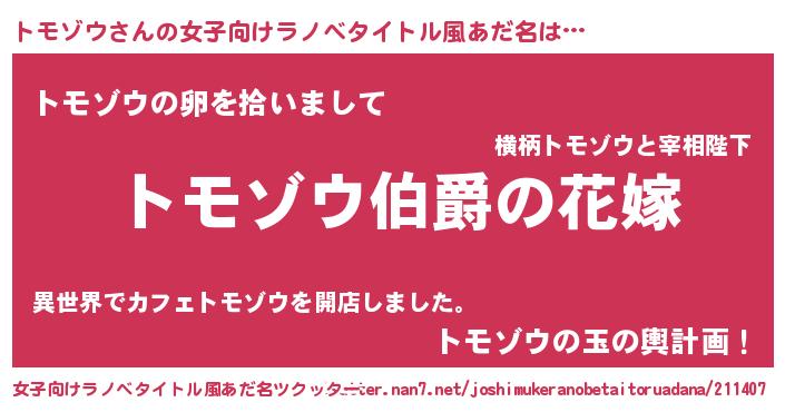 | ファンタジー風あだ名 | 『エターナルトモゾウー』『トモフェル』 |