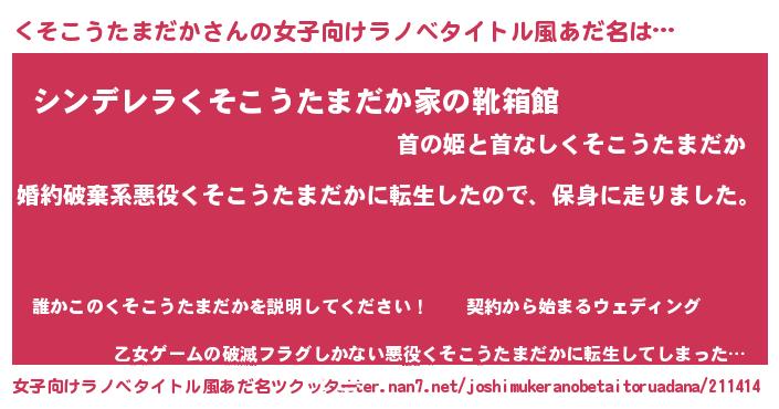 | 男性向けラノベタイトル風あだ名 | 『転生したらくそこうたまだかだった件』 |
