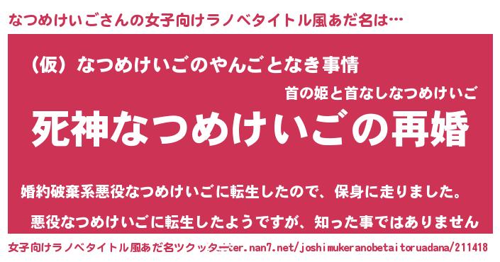 | 胡散臭い通販商品みたいなあだ名 | 『モンドセレクションを受賞したイリジウム磁石…その名も「なつめけいご」』 |