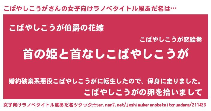 | 男性向けラノベタイトル風あだ名 | 『はたらくこばやしこうがさま!』 |