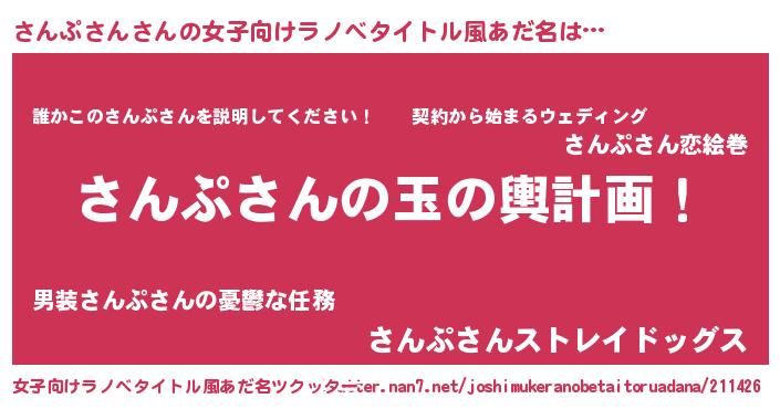 | 胡散臭い通販商品みたいなあだ名 | 『億万長者になれる霊験あらたかなお札…その名も「さんぷさん」』 |