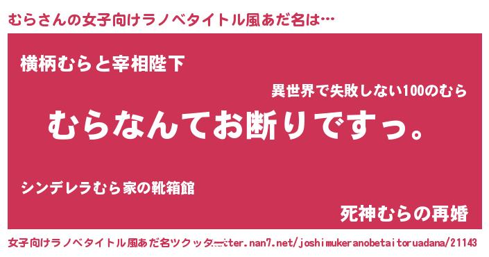 | 男性向けラノベタイトル風あだ名 | 『魔法科高校のむら』 |