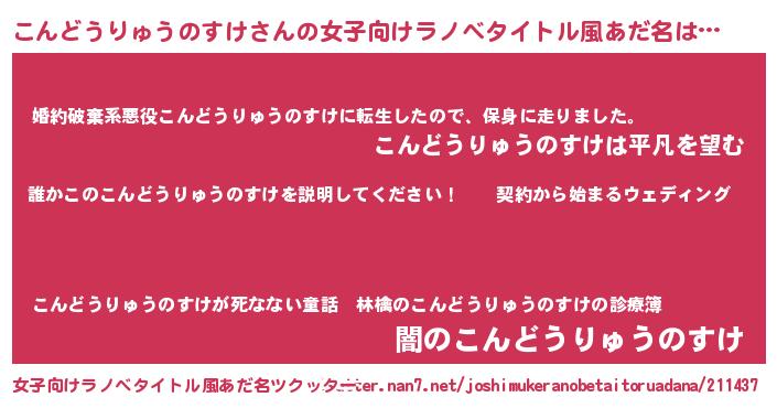 | 男性向けラノベタイトル風あだ名 | 『コンドウリュウノスケアートオンライン』 |