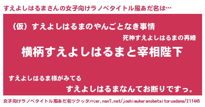 | 男性向けラノベタイトル風あだ名 | 『すえよしはるまに滅ぼされるだけの簡単なお仕事です』 |