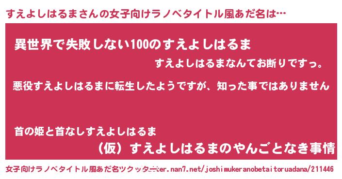 | 男性向けラノベタイトル風あだ名 | 『この素晴らしい世界にすえよしはるまを!』 |