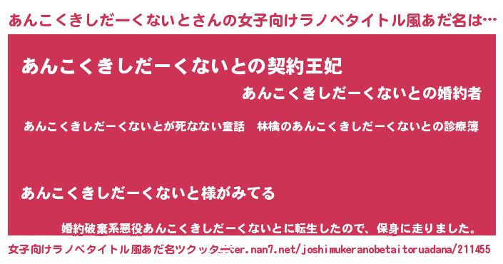 | 欧米人風あだ名 | 『ダレノガレあんこくきしだーくないと』 |