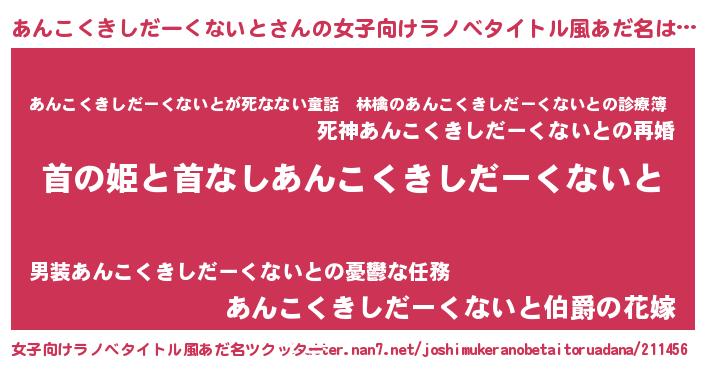 | 胡散臭い通販商品みたいなあだ名 | 『ハリウッド女優が絶賛した世界で10本だけ現存している希少なブランデー…その名も「あんこくきしだーくないと」』 |