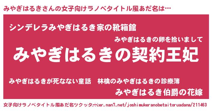 | 胡散臭い通販商品みたいなあだ名 | 『来世でも幸せになれる水素水…その名も「みやぎはるき」』 |