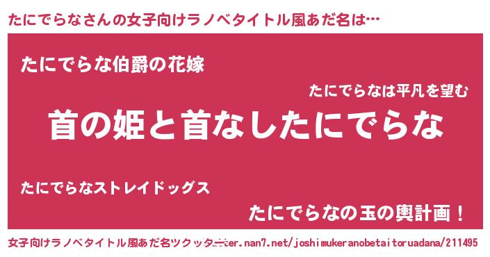 | 男性向けラノベタイトル風あだ名 | 『はたらくたにでらなさま!』 |