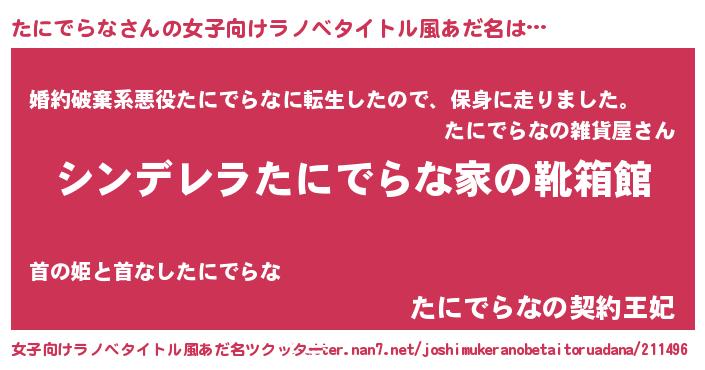 | 胡散臭い通販商品みたいなあだ名 | 『来世でも幸せになれる健康食品…その名も「たにでらな」』 |