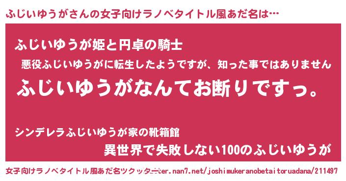 | 肩書あだ名 | 『ふじいゆうが閣下』『ふじいゆうがCEO』 |