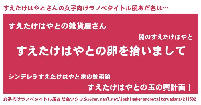 | 胡散臭い通販商品みたいなあだ名 | 『伝統あるペンダント…その名も「すえたけはやと」』 |
