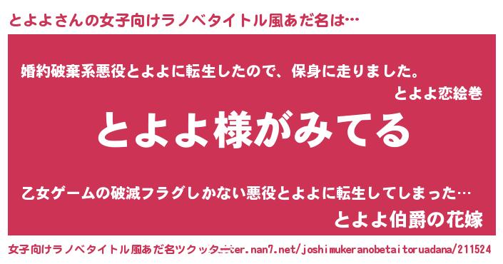 | ヒーロー風カッコイイあだ名 | 『天弓騎士トヨ』『ウルトラとよよマン』 |