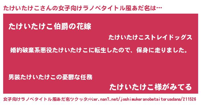| 肩書あだ名 | 『たけいたけこ中将』『たけいたけこ閣下』 |