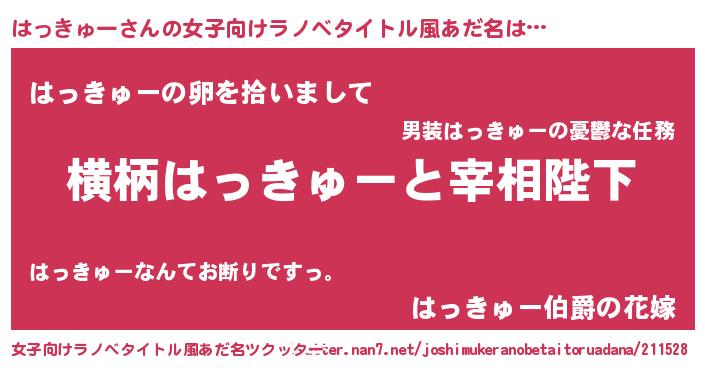 | ヒーロー風カッコイイあだ名 | 『炎刃騎士ハッ』『ネオハッキュー』 |