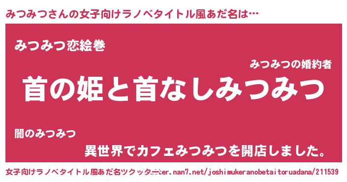 | 男性向けラノベタイトル風あだ名 | 『はたらくみつみつさま!』 |
